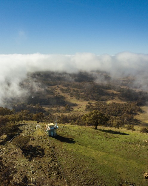 The lookout at One Tree Hill in Hall, ACT, by drone.