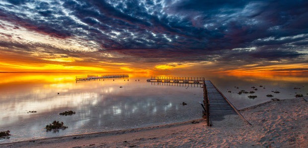 Shots of outback WA and cyclone damage jetty near Shark Bay WA