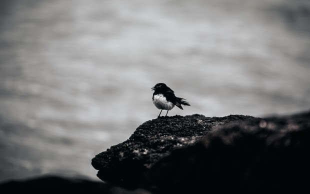 A little Willie Wagtail hanging out alone appearing to cycle through a range of emotions as he overlooks the beach. I couldn't help but project the human experience on this bird as it resembled someone taking solace in the calm of the ocean as they process their thoughts and feelings.