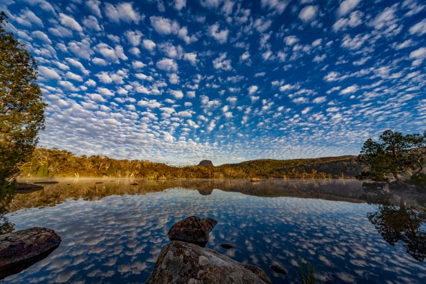 Getting up very early rewarded me with this beautiful cloud and reflection display over Lake Windermere, the Overland Track, Tas.