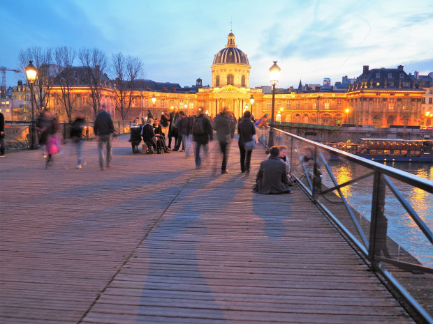 as the sun was setting in wintry Paris, everyone was out for a walk