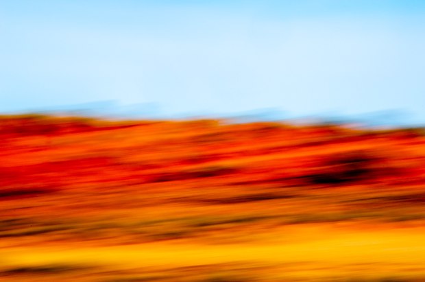 This image was taken on the track between William Creek and Coober Pedy, with a slow shutter speed and panning to blurr the capture the colorful dunes but without the detail.