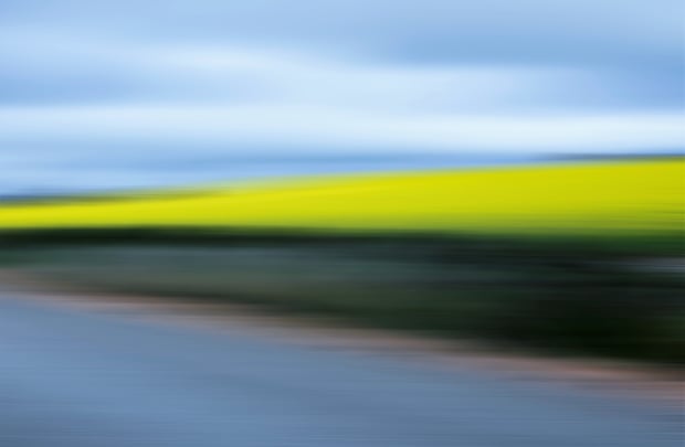 a canola field makes for an interesting balance of thirds as we drive by at 100kms.