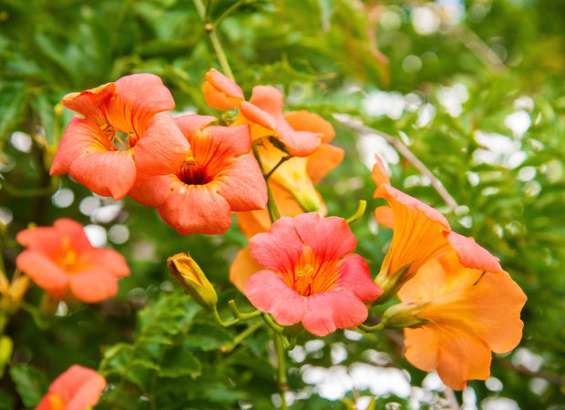 Chinese Trumpet Vine flaunting it's vibrant peachy tones.