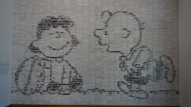 Been a fan all my life of Snoopy Charlie Brown and the gang. had to go to the Museum when in USA. The Peanuts Tile Mural by Japanese artist Yoshiteru Otani measures slightly larger than 17 x 22 feet, and covers the south wall of the Great Hall. It features an image of Lucy holding the football for Charlie Brown and is composed of 3,588 Peanuts comic strip images printed on individual 2 x 8 inch ceramic tiles.