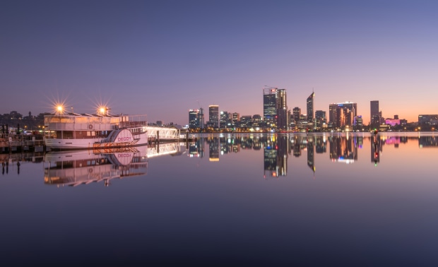 Early morning views of the Perth city skyline