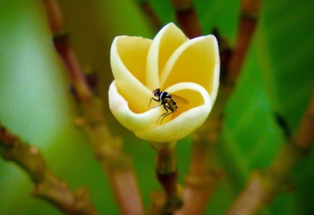 Leading lines of Frangipani with a fly occupying the center position were the inspiration to capture the moment.