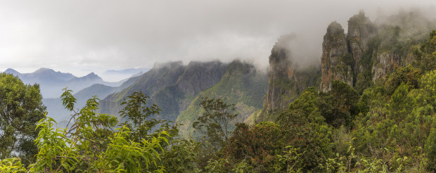 This beautiful lookout is near the town of Kodaikanal in India's south. Know as Pillar Rocks, I was lucky the fog cleared a little to capture this 8 image panorama.