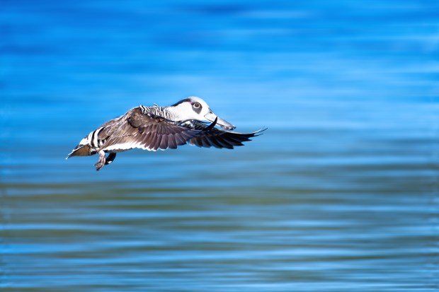 Noel Manikkam, Pink-eared duck in flight (January Theme: Blue)