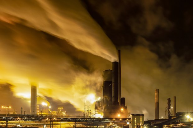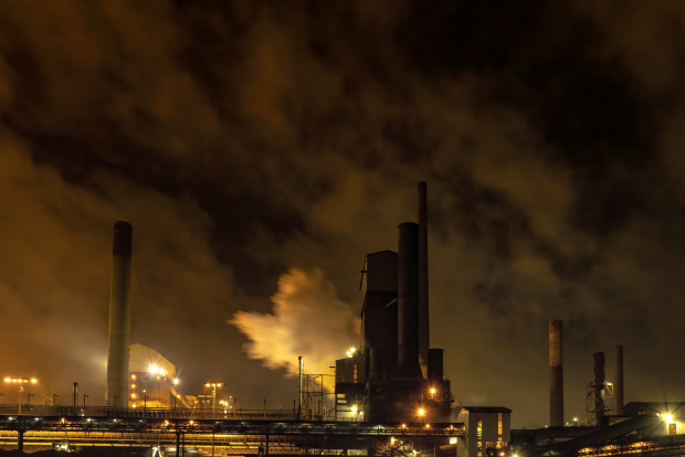 A time series taken at night of the steam and smoke escaping during the coke making process
