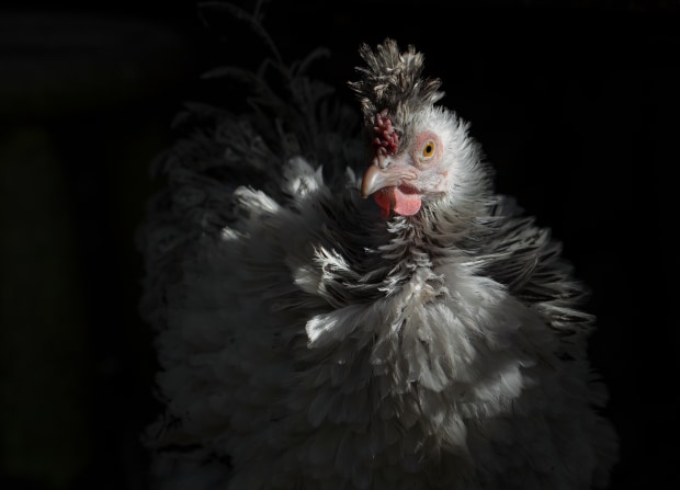 I have taken a series of portraits of my pet chicken, Ms Feathers. Our hen house is in a shady part of the garden and these images are taken using shafts of afternoon sunlight. The drama of the light matches the personality of Ms Feathers. I had intended to submit images of our other chickens but Ms Feathers is the star and loves to pose for photographs.