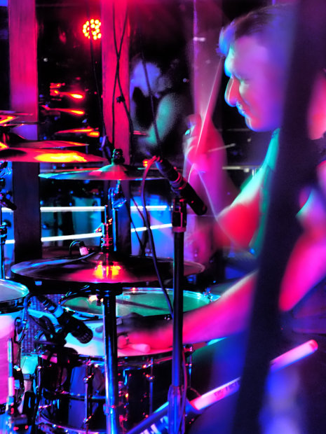 I was shooting a band on a boat in docklands and couldn't help but admire how skilful and fast the drummers hands were so I dropped my iso and chose to get the full motion of his hands moving, contrasting sharply against the glinting light of the cymbal, to create a really interesting composition