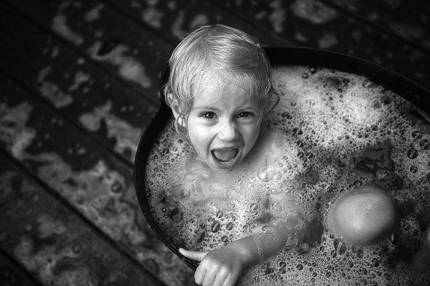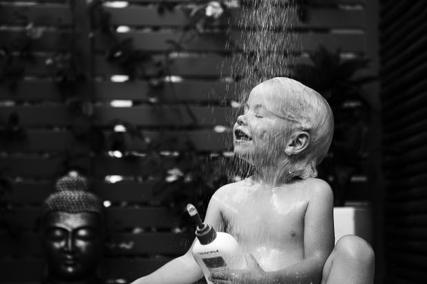A simple shower outside renders my lively child still for a moment. Caught up in the falling water from above, but it's not long before bubbles, buckets and play resumes for the day.