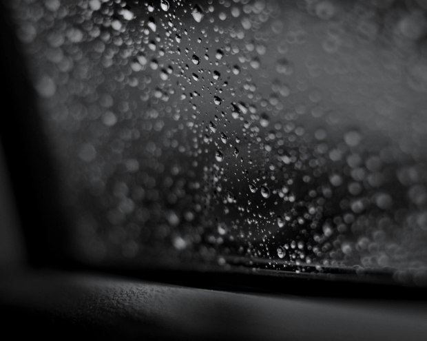 Moody rain drops off a car window
