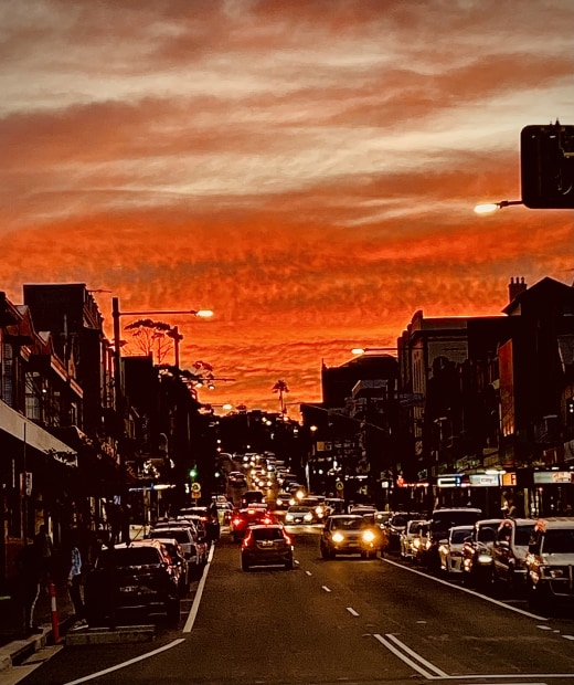 Looking up Coogee Bay Rd. In Coogee on dusk