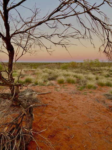 Dawn light over red earth and pink rimmed horizon, breathtaking