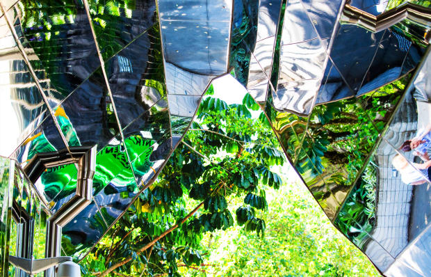 The walkway with mirrors overhead is an abstract reflection of the life below in Flecker Botanic Gardens, Cairns.