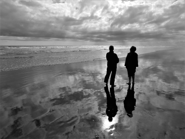 At Foxton Beach I stopped mid walk and reflected on the astonishing reflections the sky and light were creating on the wet surface of the sand. My companions walked further on and then stopped to reflect on the beautiful landscape and scene they were a part of. I watched and reflected on the image of my friends standing on the surface of the world. The peace, tranquility and magnitude of our world and surroundings. Foxton Beach, Autumn, New Zealand.