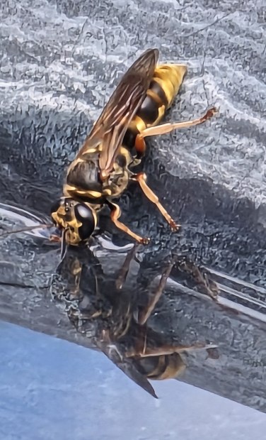 Wasp having a drink out of a bird bath
