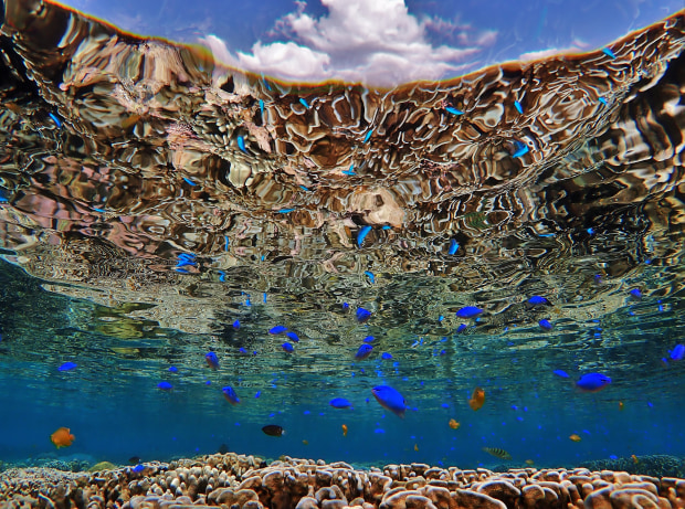Looking down at the underwater world unfold before your eyes is breathtaking. Submerge yourself, look up. There before you a whole new perspective and dimension will unfold. Water is one of the most amazing substances on the planet but one overlooked aspect of water is its artistic qualities. Look for the obscure, the different then try and capture that. Challenge your mind with patterns, colours and textures.