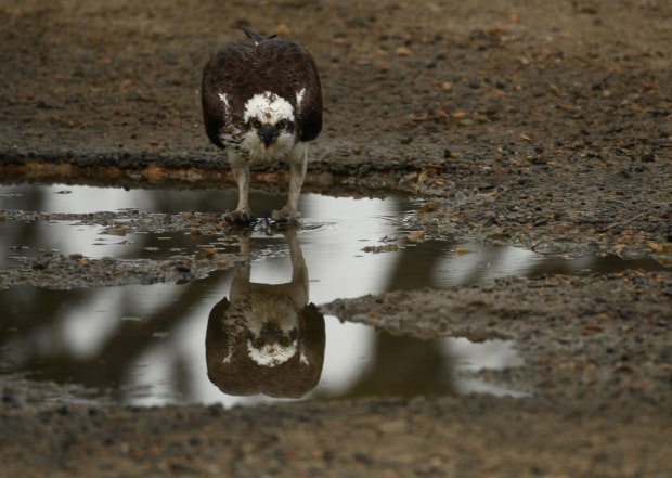 Been following this Osprey for weeks and turned around and it was on the ground having a drink out of the puddle behind me