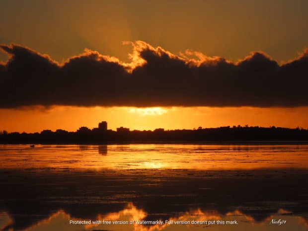Reflections of the sunrise & clouds over the lake.
