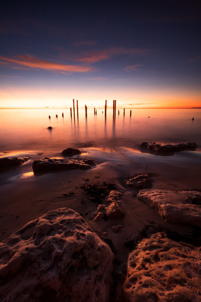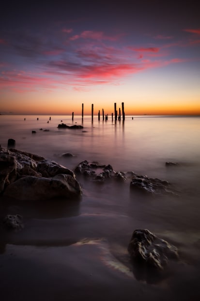 The ruins of Port Willunga jetty - one of the best places for sunset photography in South Australia.