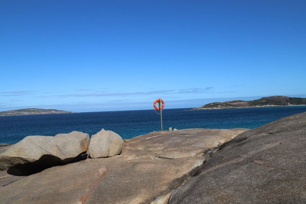 Life ring stands guard over the ocean