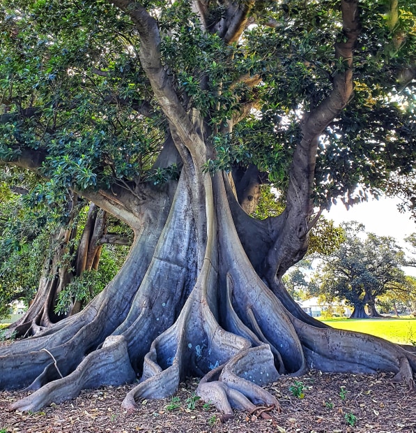 The exposed roots of a Moreton Bay fig tree could tell a thousand stories