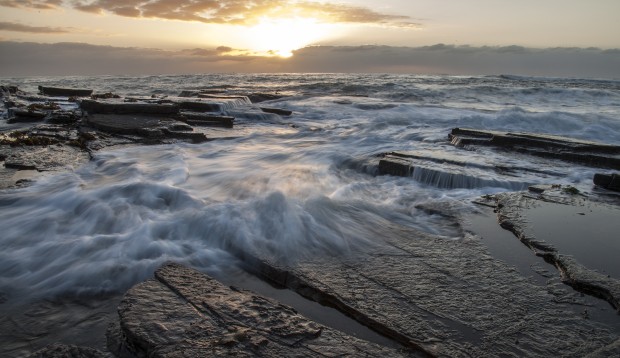 Stormy Sunrise at Austimer headland NSW with a rising swell