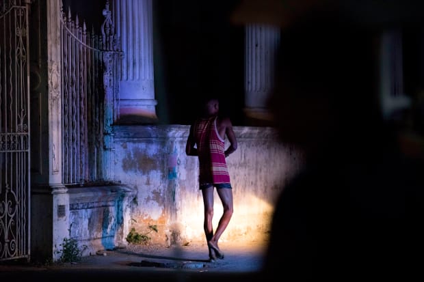 night in Stone town ,Zanzibar. car light on this men ,look like a movie with police after the...