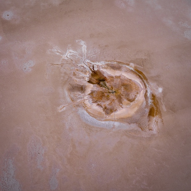 Looking like a boiling sea this salt flat in Lake Eyre was produced by recent flooding, now only the salt and a spring survive.