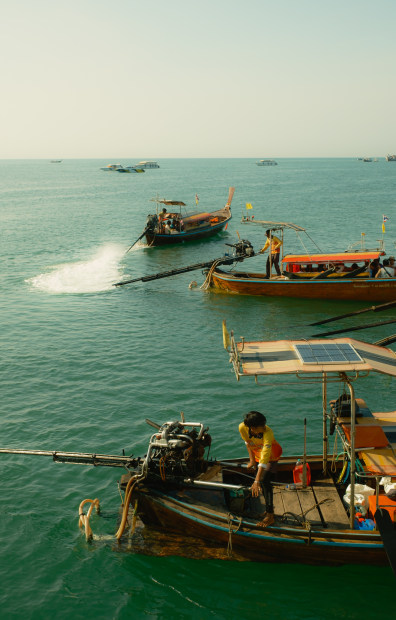 Thai fishermen and scuba tour leaders wriggle their way out of the tightly packed docks of Ao Nang. Shooting from a high vantage point, I used my favourite focal length for travel (35mm) to widen the scene just a little more and include the series of characters in their boats along the docks. As an Australian, I was immediately struck by how vibrantly coloured, and yet earthy in tone the boats being used by the captains were. This encouraged me to include as much of the scene as I could while trying to bring a sense of order to it by using my high vantage point. To give the scene a sense of movement and narrative, I waited for the first couple of boats to release from the pier, showing the organised chaos with which the boats all eventually make their way out. Since the light was very bright, I reduced the clarity in-camera to give the brighter spots a bit of shine and glow. I also used a cloudy-oriented white balance to give the scene a slightly nostalgic tonality consistent with the at once simple, dangerous, yet exciting life that I imagine fishermen to lead.