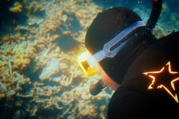 An image capturing a humans quest to explore the Great Barrier Reef.