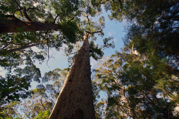 1. Taken from a Mavic 2 Drone at Wave Rock in Panoramic mode. 2. Taken from a Mavic 2 Drone at Conspicuous Bay near the town of Walpole. 3. Taken with a Pentax KP camera in the forest of the Valley of the Giants looking up the trunk of a Tingle Tree. 4. Taken with a Pentax KP camera on a catwalk 40 metres up looking down onto the forest floor at the Valley of the Giants.