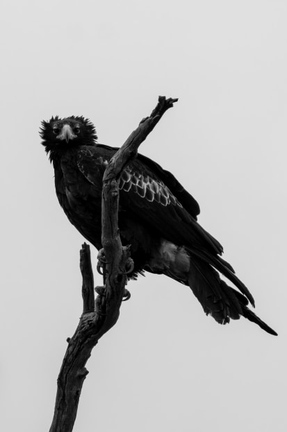 Wedge tail eagle preached up the tops of the trees looking over the Macquarie marshes on a overcast afternoon