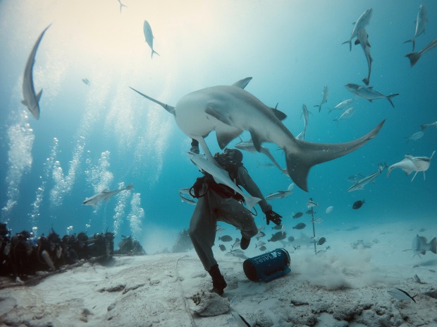 This bull shark feeder Carlos Estrabeau makes this look easy, graceful and beautiful