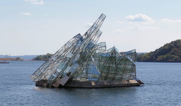 Part of the Oslo Opera house on water. The opera house has unique features eg skateboarding on the roof and this is an offshoot.