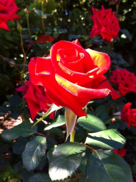 The photo of this rose that I took describes a girl that got bullied. She is alone, with no friends. Other students picked on her. One negative word thrown at a time. But, as they say the Nature of Beauty over powers all. She is filled with beautiful, natural looks and with a bright red, caring heart, just like the colour of the rose. This girl stands out wherever she goes because of her kind heart
