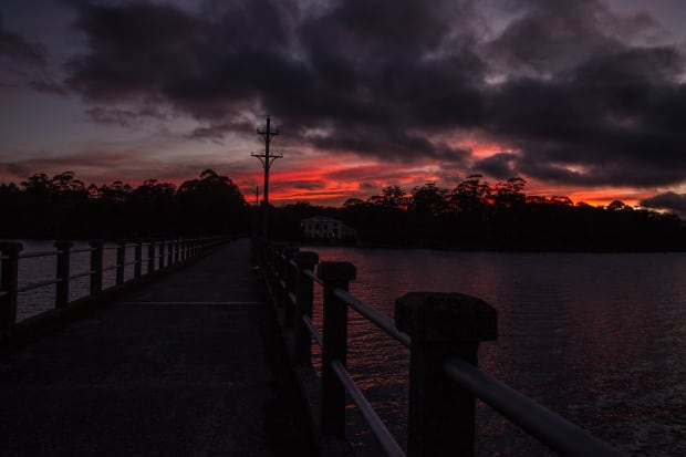 This is taken at Pumphouse Point at Lake St Clair. The view is from the flume outside the Pumphouse looking towards the Shorehouse. It was 5am and a little chilly but I was rewarded with this gorgeous sky show, supposedly threatening bad weather but wrong on this occasion.