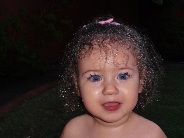 A recent warm evening and my granddaughter had been running under the sprinklers to cool down. A quick photo as it was becoming dark shows the absolute beauty of this child with beads of water shimmering in her curly hair.