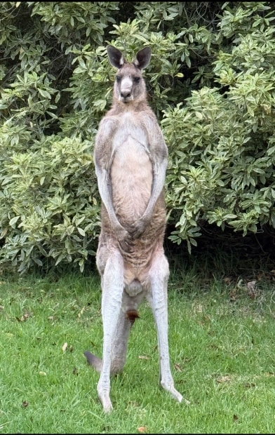 Our elderly male Eastern Grey kangaroo, who visits us regularly. A confident, regal Aussie icon.