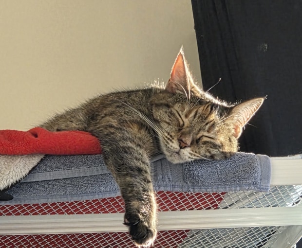 Clementine the great our mackrel tabby having a moring snooze