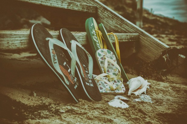 Thongs and shells at the timber stairs leading to the beach