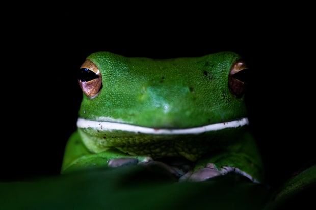 With their bright green camouflage skin and big eye is the green tree frogs are excellent night Hunters