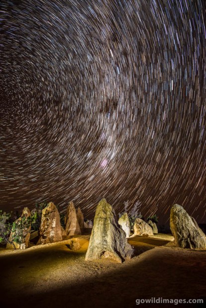 The Milky Way glows brightly on a clear winter's night at The Pinnacles, Nambung NP, WA. 14 image composite with light painting by torch. 2min f8 ISO100 (foreground), 13x59s f5.6 ISO1600 (stars)
