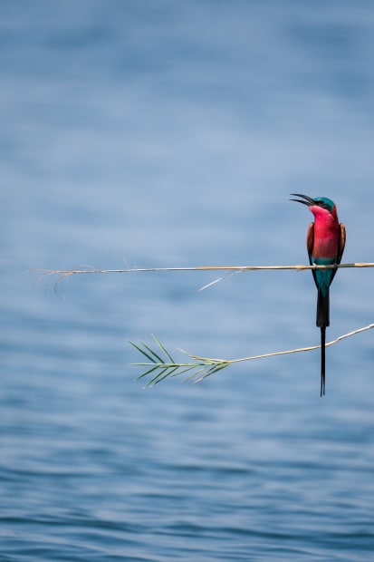 Hanging out in the weeds of the Chobe River, this Southern Carmine Bee-Eater sure brings along of colour to the sky
