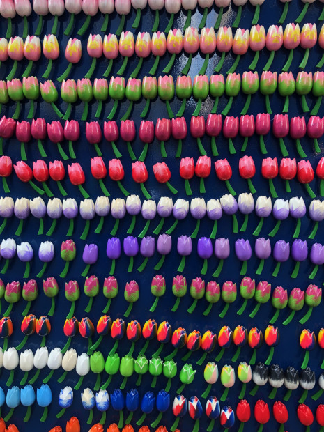 In Amsterdam.. a stall selling mostly tulip bulbs, also had a wall of tulip fridge magnets.