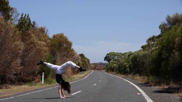 Our youthful dancer's lively movement mirrors the nature of flourishing plants as well as the shrubs that burnt up in a spontaneous yet spectacular bushfire. She risks her life for the thrill of feeling her body move in the middle of the endless road.