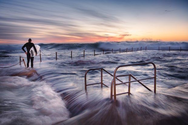 Local Sydney surfer waits for a break in the sets for his paddle out.